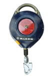 安全ブロックの緑の紐をひっぱり、フックを下して腰のD輪に取付け。